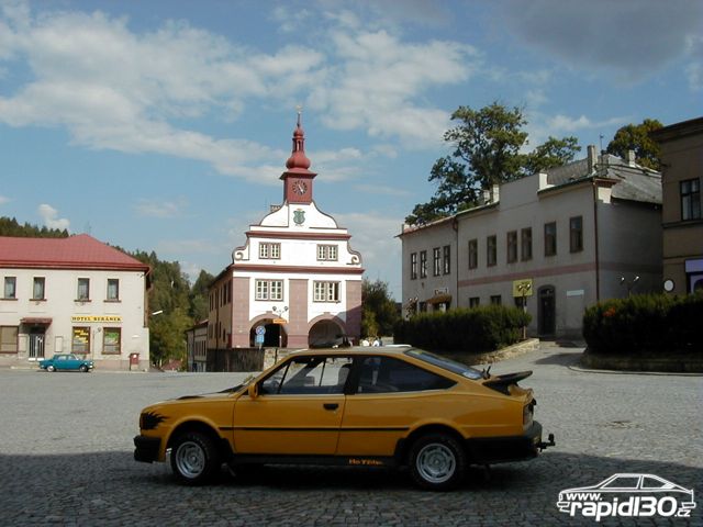 Takhle to vypadalo po srazu v Mělníce. Namontován zadní stěrač, vnitřně stavitelná boční zrcátka a anténa na CB.
