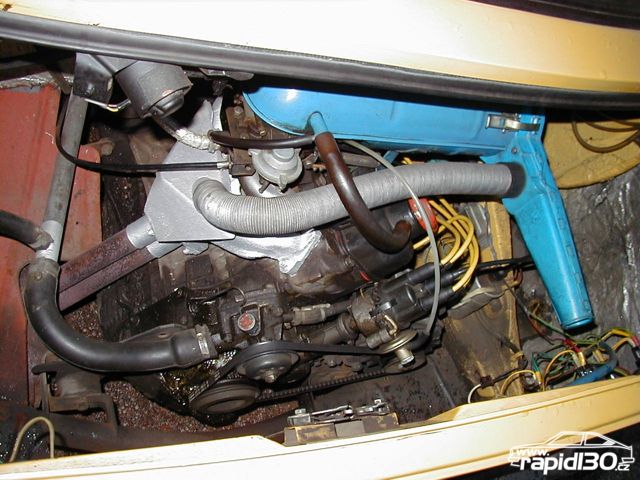 takhle to vypadá po sundání předního nárazníku (docela to jde), dále pak jsou zadní světla a blinkry nastříkány tmavým lakem a prostor pod SPZ je natřenej na černo (jinak žádný jiný změny, kromě žlutejch kabelů ke svíčkám)